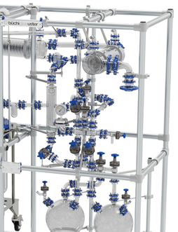 Verrerie supérieure de distillation fabriquée avec les éléments buchiflex Raccord unique flexible pour des procédés divers et fiables sous vide.